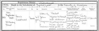 | Annie Chapman’s Death Certificate |