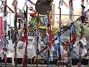 decorated with messages, flowers and ribbons in remembrance to those