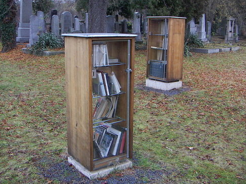 1995, the cemetery was finally restored. Near the three bookshelves stands a