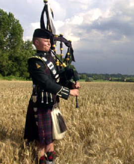 bagpiper was walking away, slowly, toward the sun, head held high, kilt and red