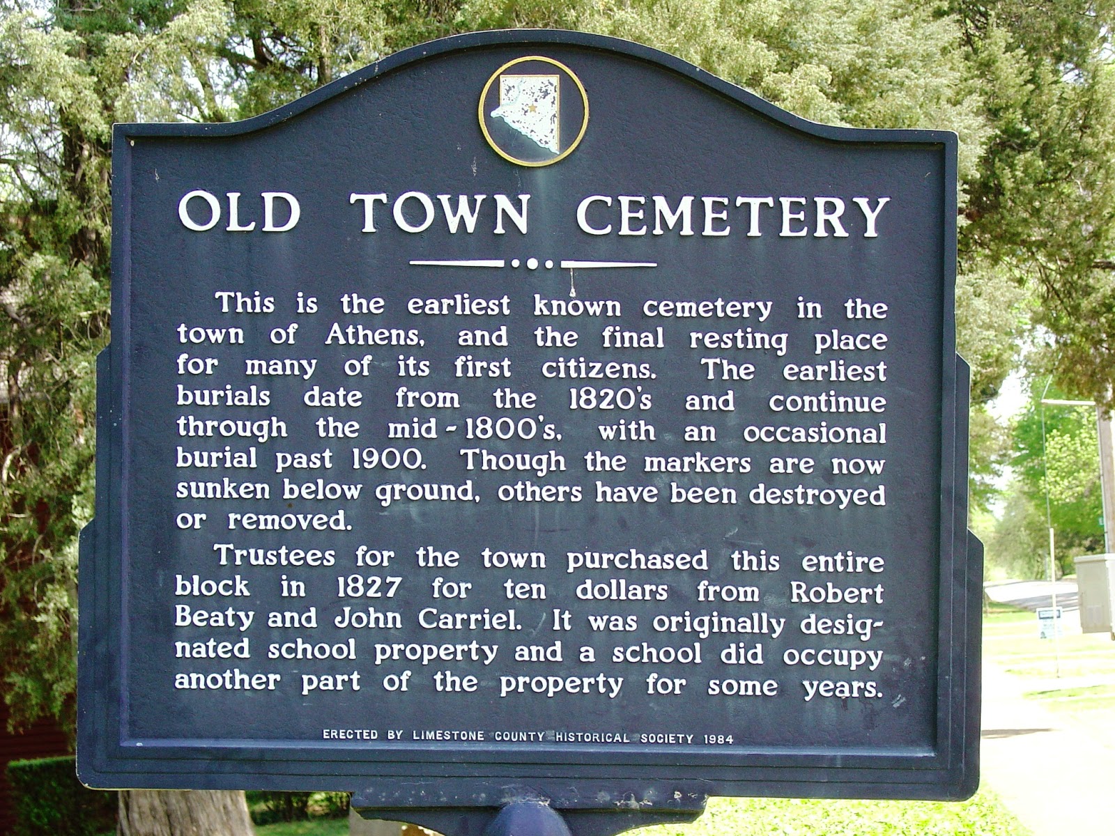standing up in Old Town Cemetery in Athens, Alabama on August 23, 1845. Boucher