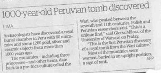 the Peruvians buried their royalty in an upright position, and in some ancient