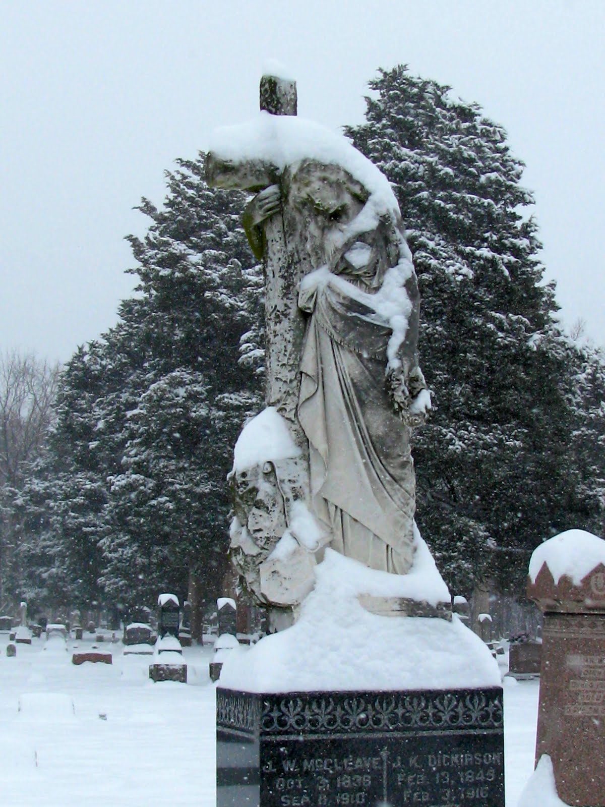 (someone who frequent cemeteries), I love the abundance of evergreen trees found in the older sections of the graveyard.