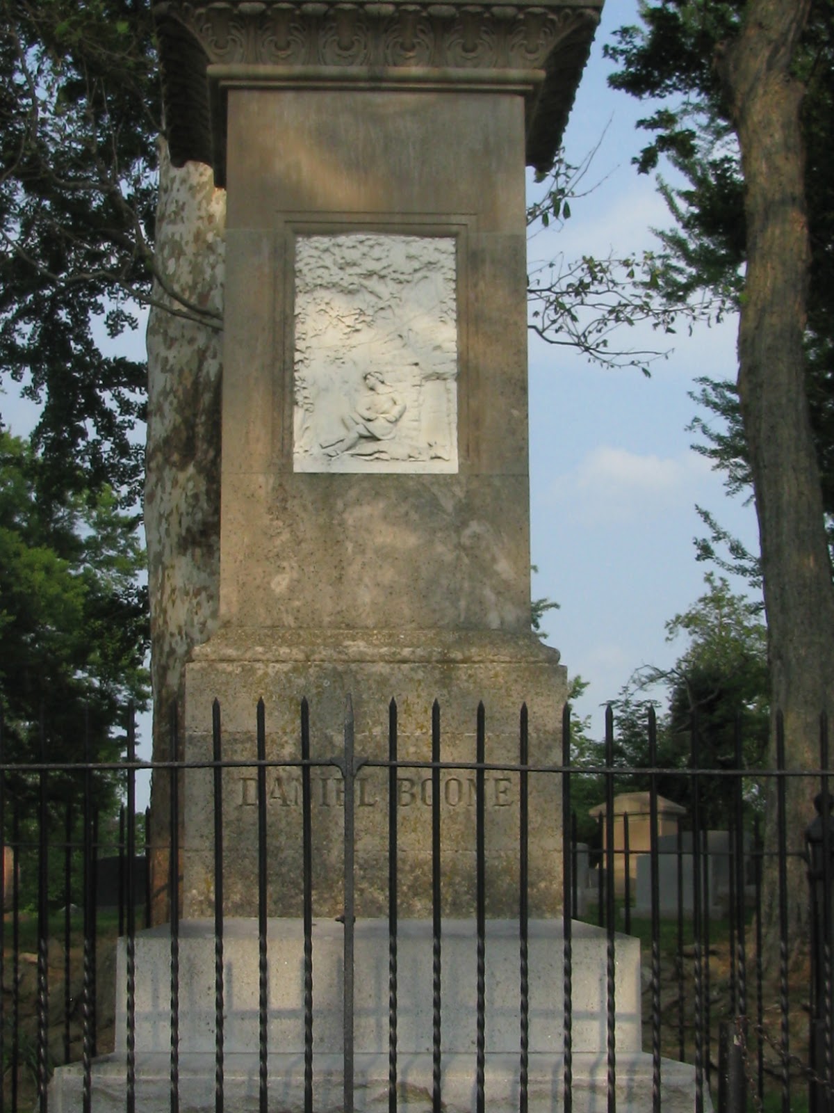 Daniel Boone died on September 26, 1820 at his son’s home on Femme Osage Creek in Missouri. He was buried on Teuque Creek, next to his wife, Rebecca, who had died in 1813. In 1845, Boone’s remains were taken and reburied in the new cemetery (Frankfort Cemetery) in Frankfort, Kentucky. Legend has it that the wrong bones were dug up in Missouri and taken back to Kentucky. Both cemeteries still claim to have Boone buried there.