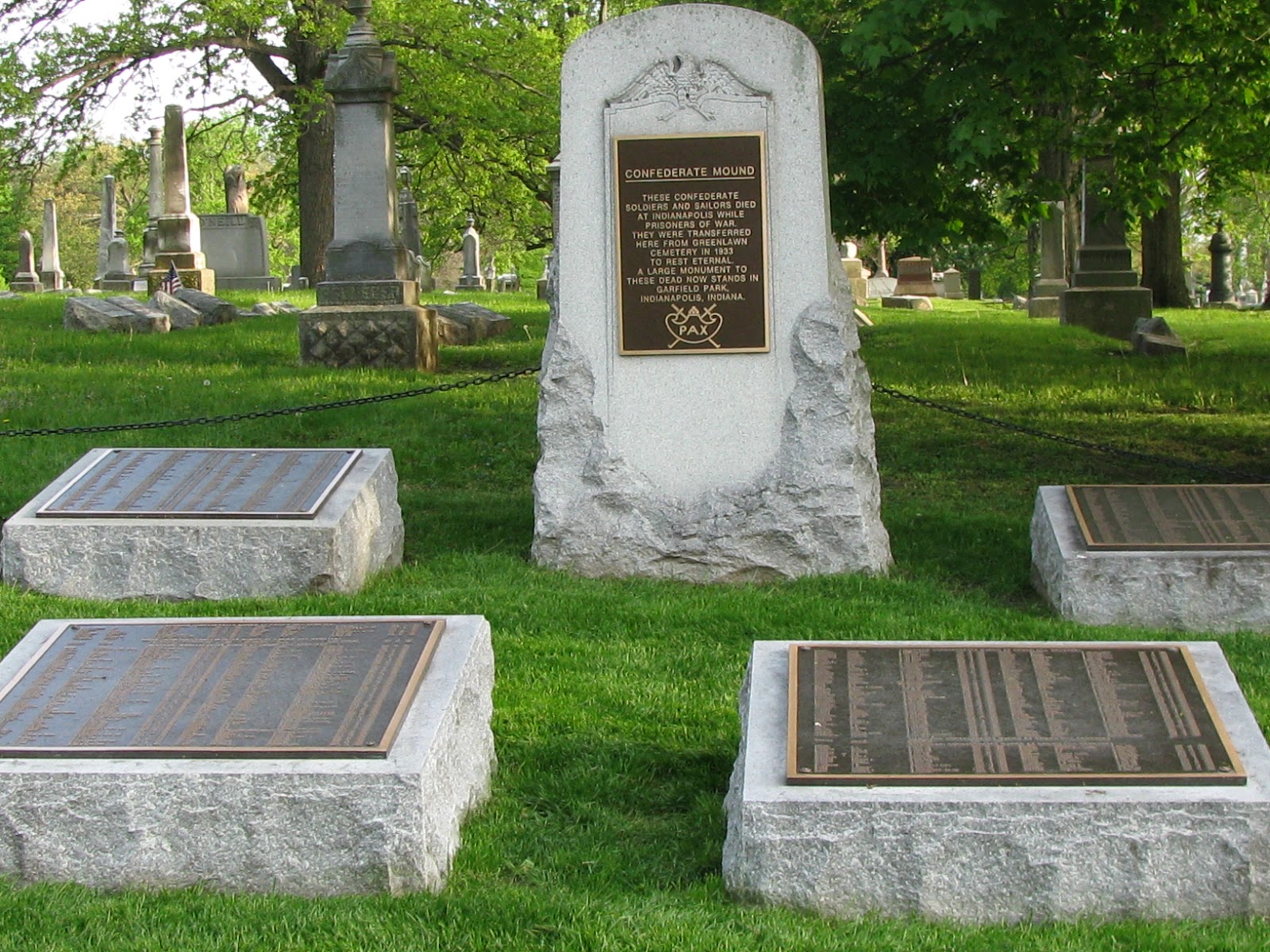 Another military burial ground, the Confederate Mound, is the final resting place of 1,616 Confederate Prisoners of the Civil War. These southern soldiers died while being detained at Camp Morton from 1862 through 1865. Most were originally buried at the City Cemetery, but were moved in 1931 by the War Department.