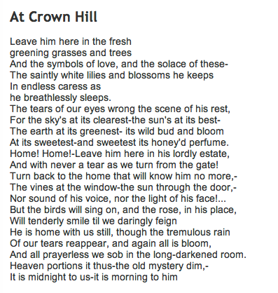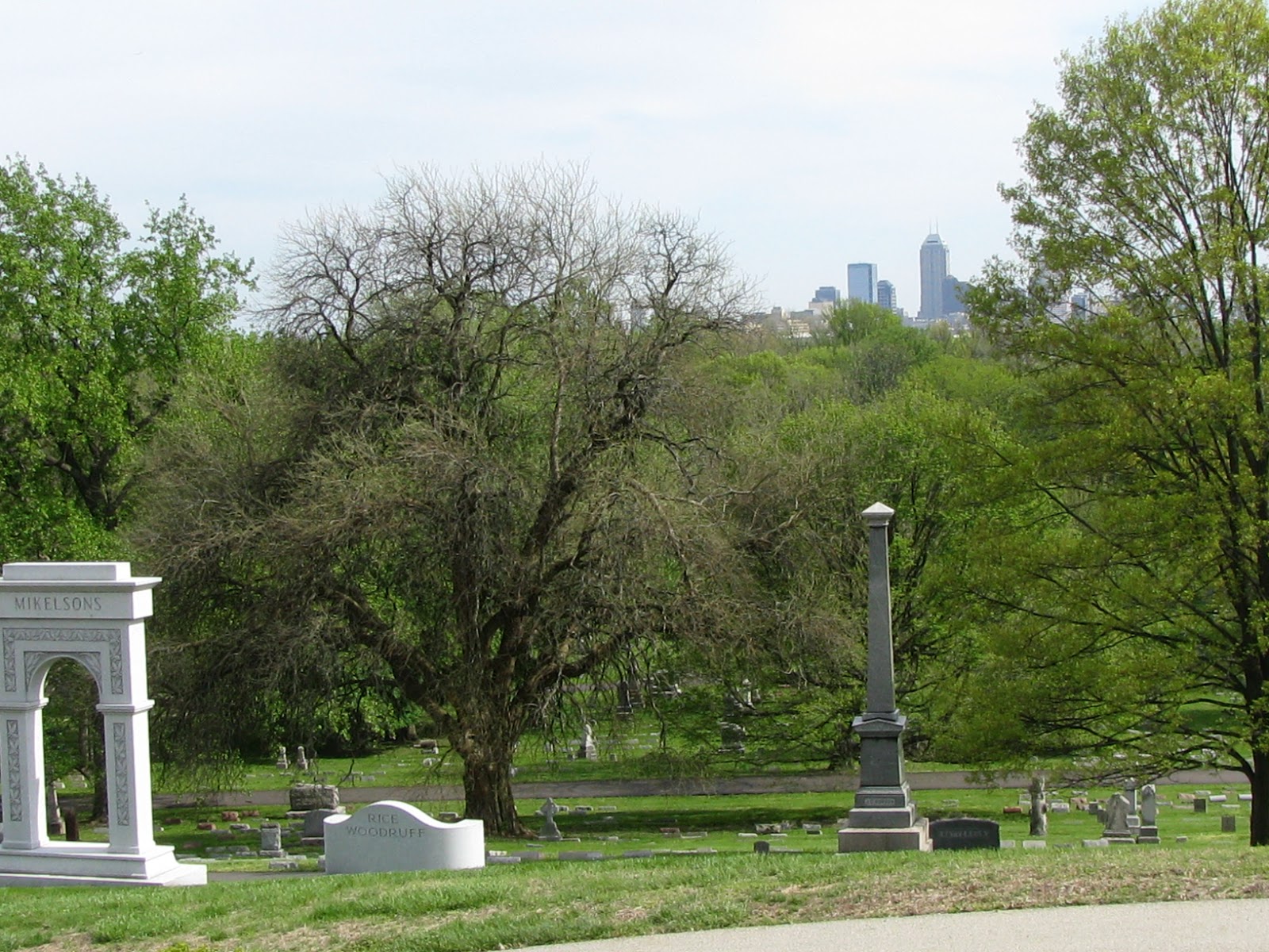Hoosier Poet James Whitcomb Riley was the first person to be buried on top of the crown in 1917 – 18 months after his death. From the top, or ‘crown’ of the hill you can see downtown Indianapolis, almost three miles away.