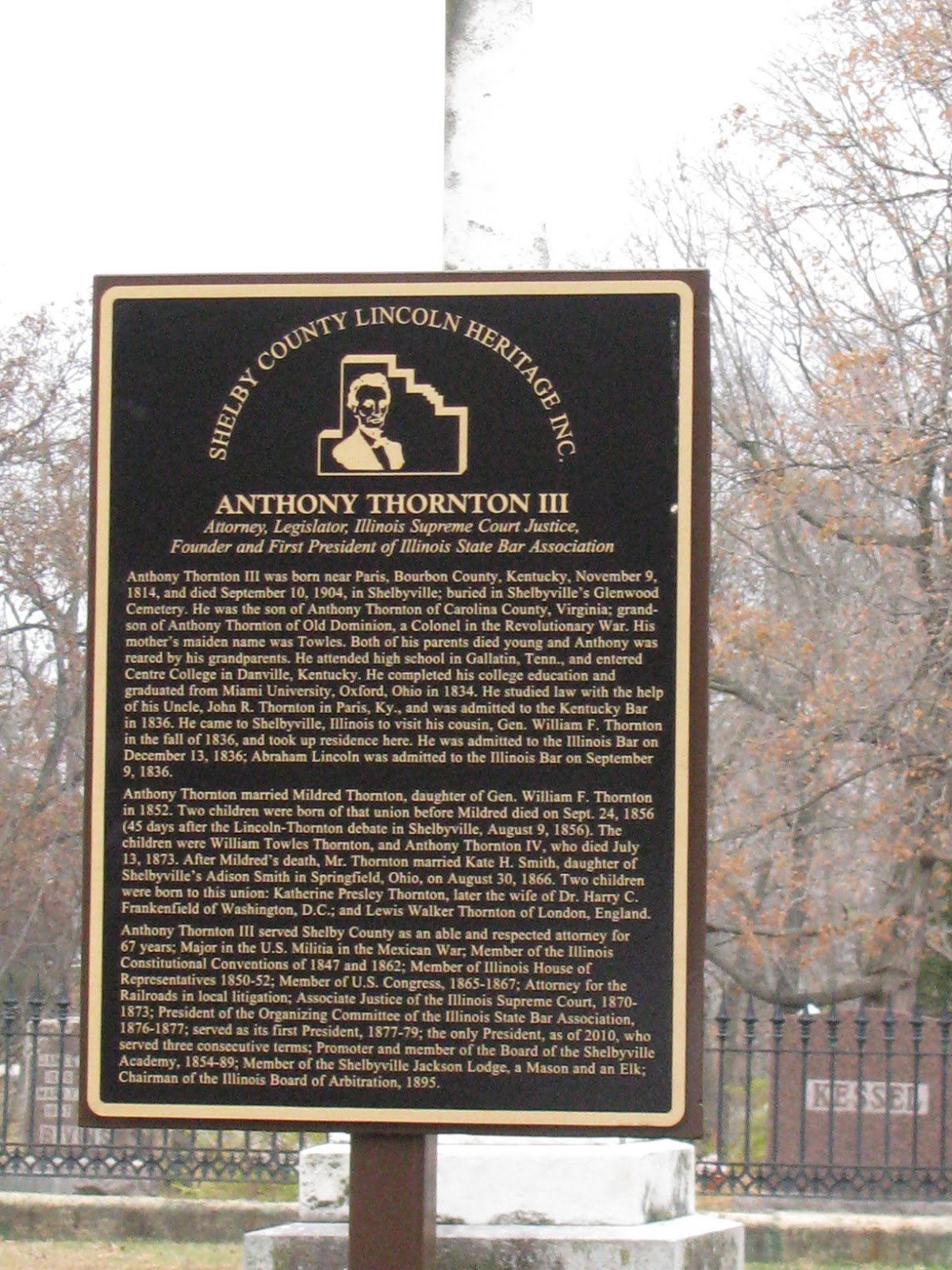 The famous buried here include Illinois politicians Samuel Moulton and Anthony Thornton. Josephine Garis Cochran, the inventor or the dishwasher, is also buried here. General William Thornton who fought in the War of 1812 is buried in a family plot. And John G. O’Brien, a man who lived in three centuries – the eighteenth, nineteenth and twentieth – 1793 to 1901 is at rest here. Mr. O’Brien died at the age of 108.