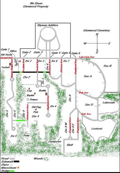 For the genealogist, Glenwood offers several options. The Sexton’s office has burial records on paper and computer. Maps are available for each section, and for the entire cemetery. And, for those unable to make the trip, Sexton Tyson Mahnke has been known to go the extra mile to assist researchers, when possible.