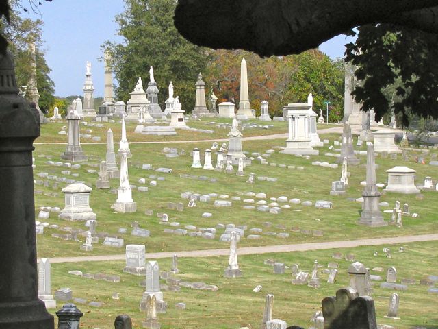 cemetery grounds are made up of numerous hills. Most of the landscaping was done