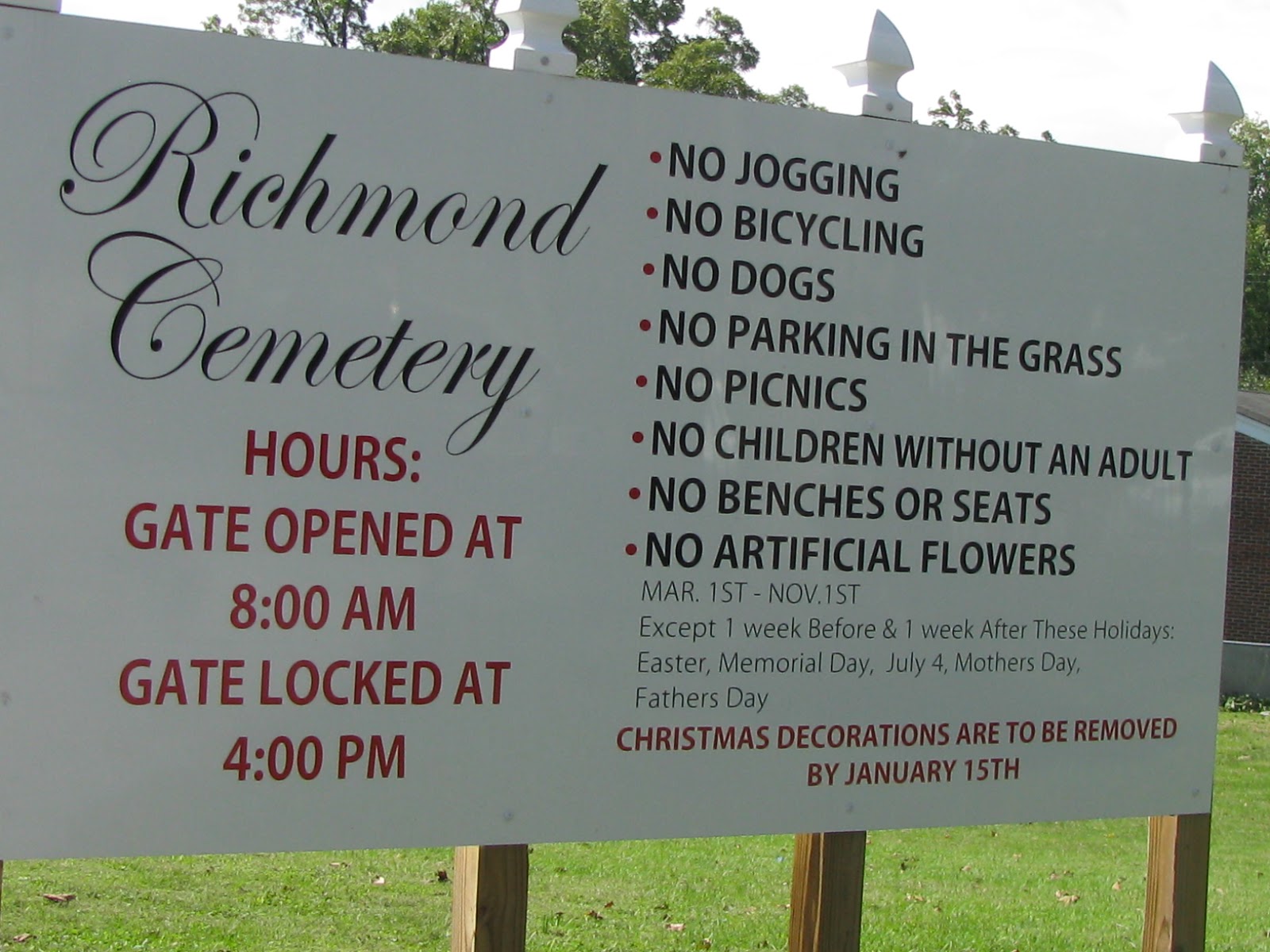 Richmond Cemetery is located on East Main Street in Richmond, Kentucky. It is open from 8:00 A.M. until 4