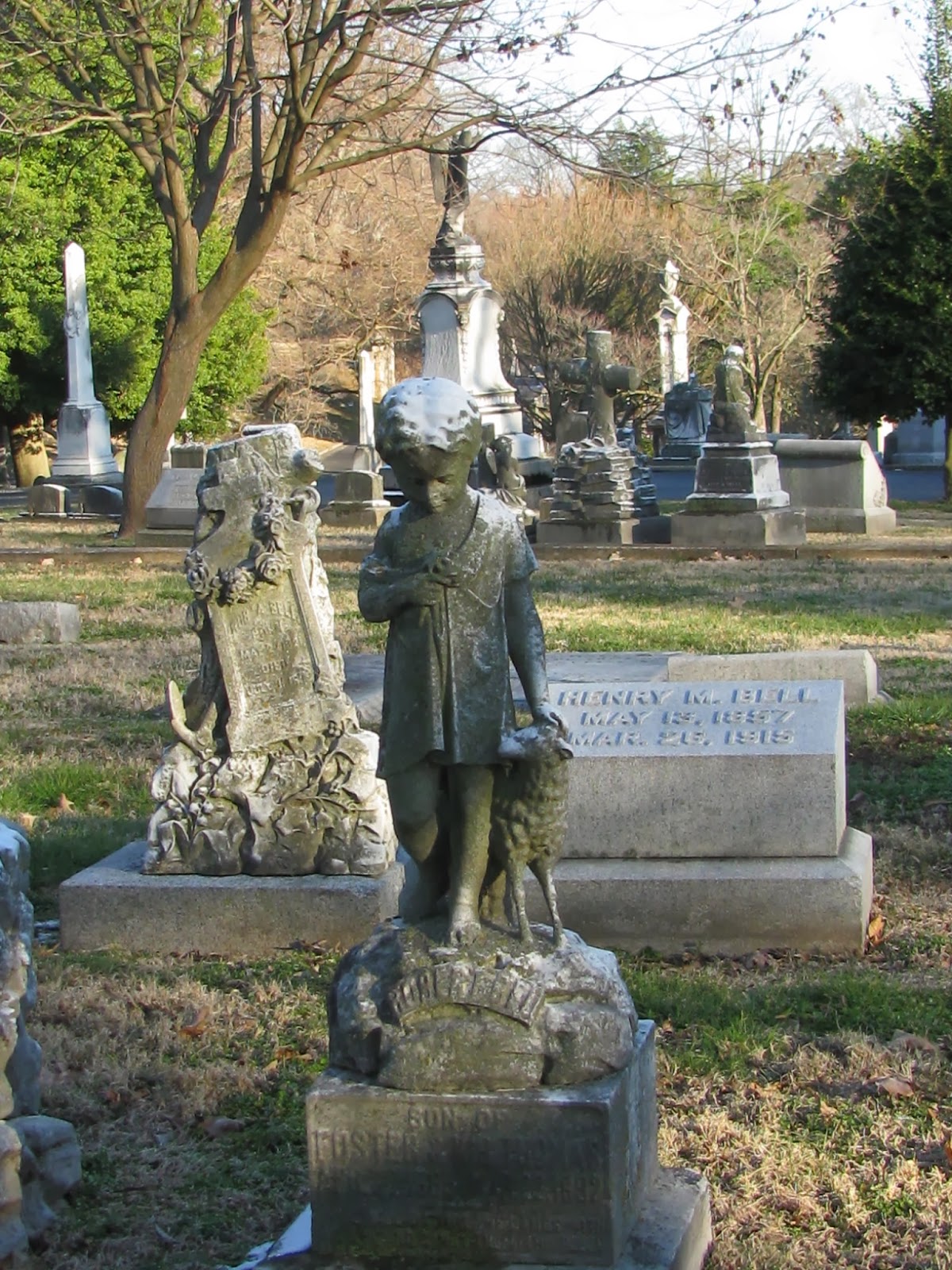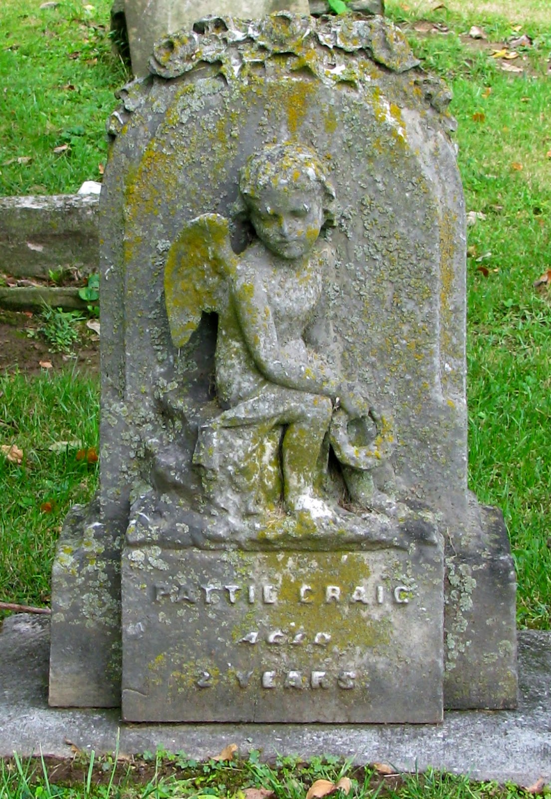 graves may be marked with lambs, dead doves, cherubs, or in some cases, the