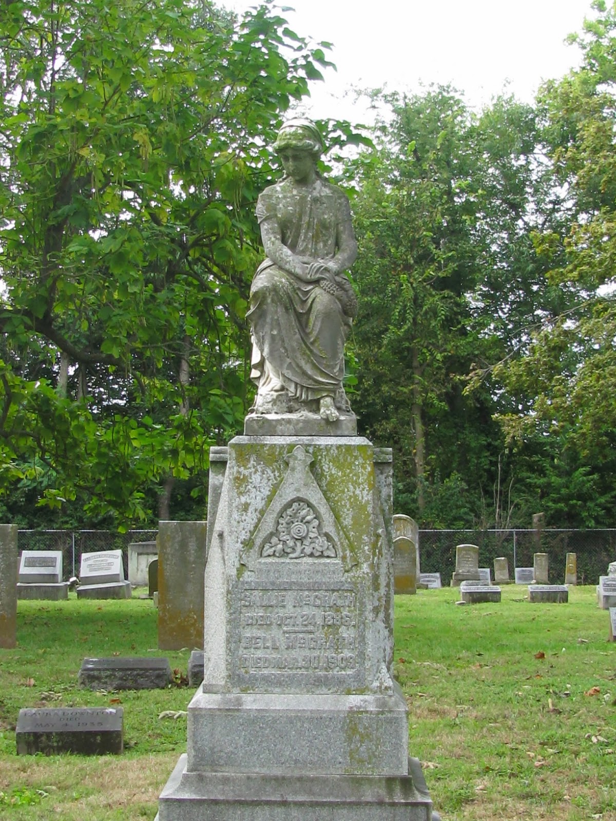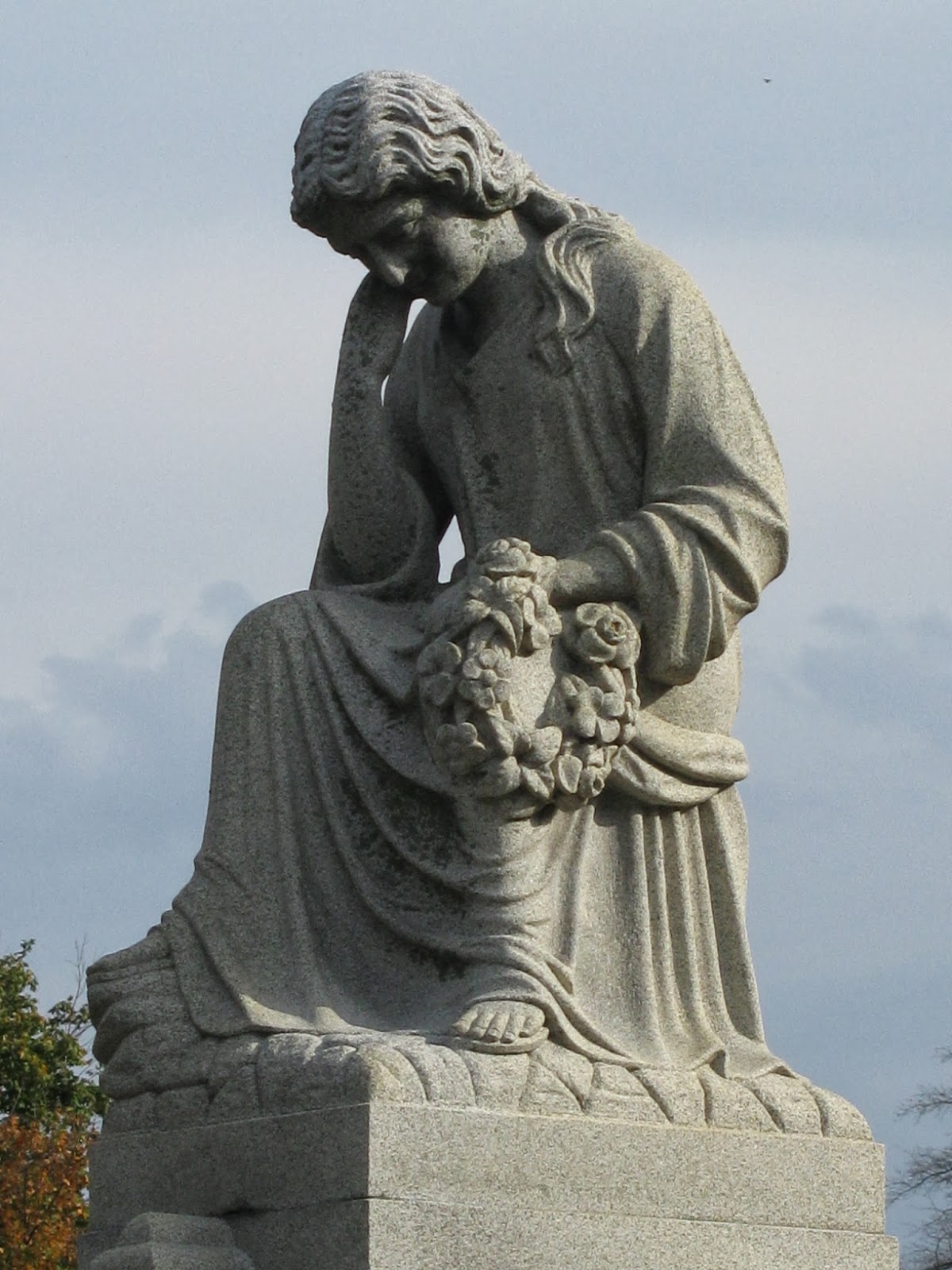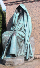Franklin Simmons, the two female statues represent Grief, who is weeping against the shoulder of History.
