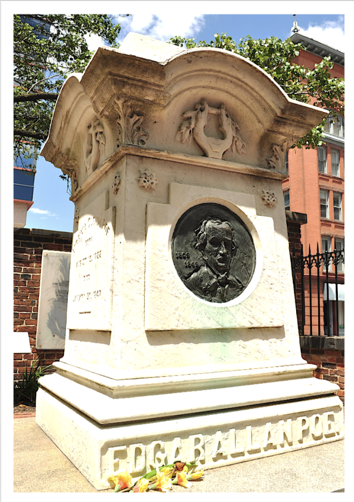 Poe left Richmond on September 27, 1849. Two weeks later, on October 3, he was found semiconscious on the streets of Baltimore. He was taken to a medical college where he died on October 7. His cause of death was referred to as “congestion of the brain,” or “cerebral inflammation.” Both were euphemisms for alcoholism. Regardless, Edgar Allan Poe died under “mysterious circumstances.”