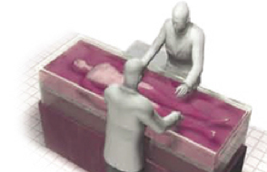 dissolving the veins, and extracting blood from the tissues. The body is then placed in a vat of