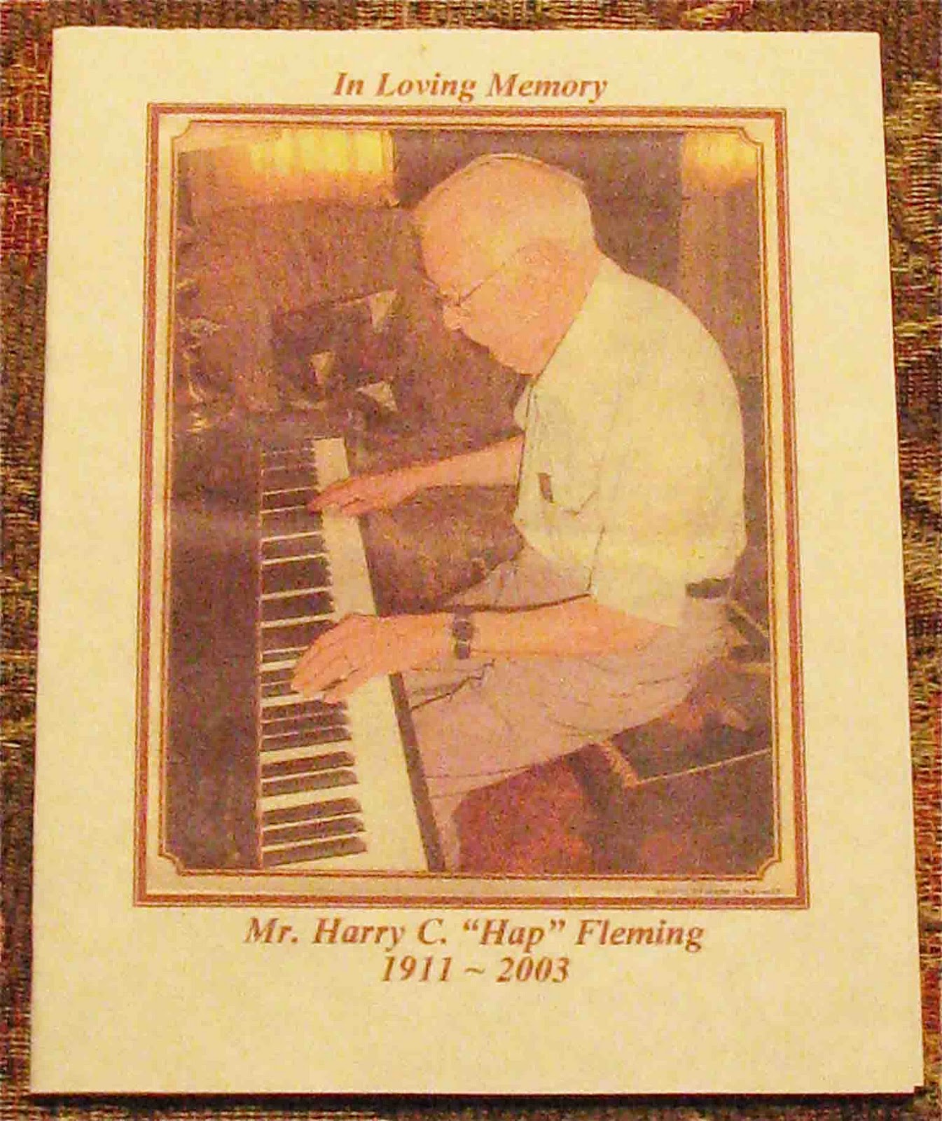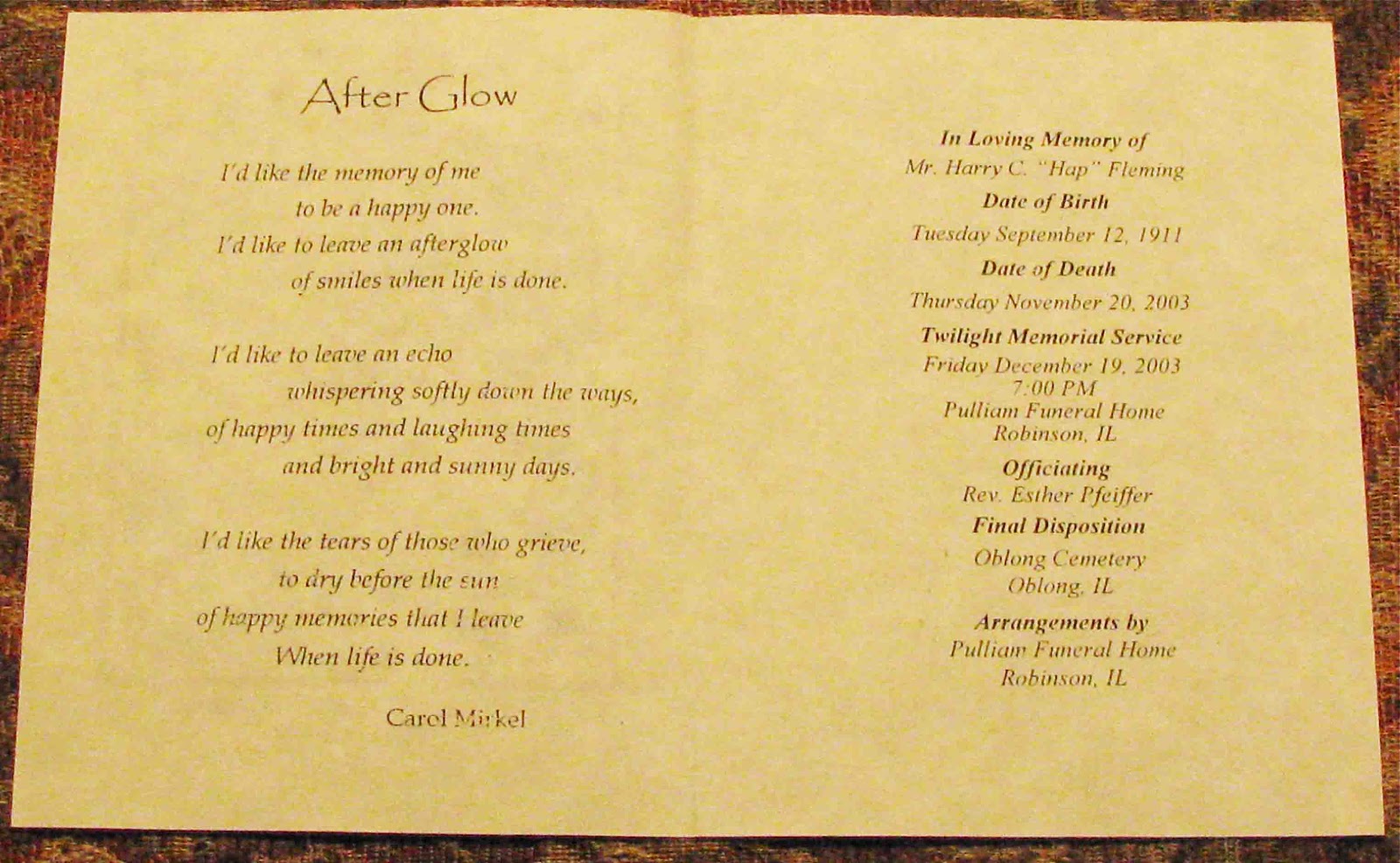 | Information inside Hap’s memorial card |