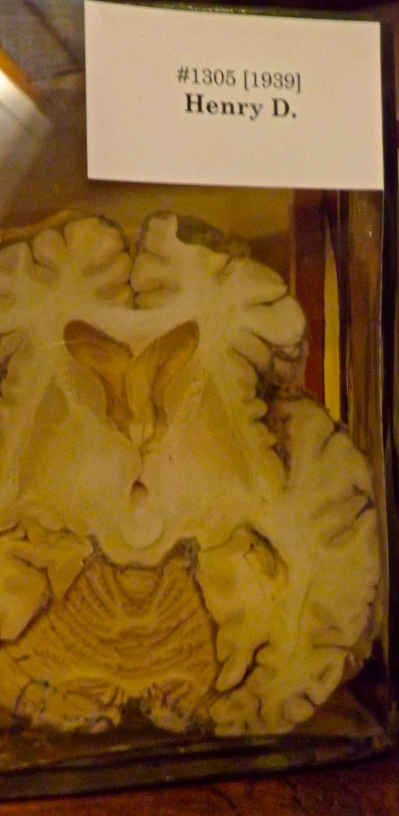 collection of brains and tumors seen floating in glass specimen jars filled