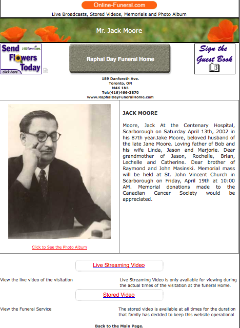 called “Life Tributes” that includes webcast and recorded funerals, tribute