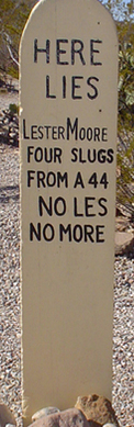 Wells Fargo Agent, Lester Moore was also buried in Boot Hill with the following epitaph: