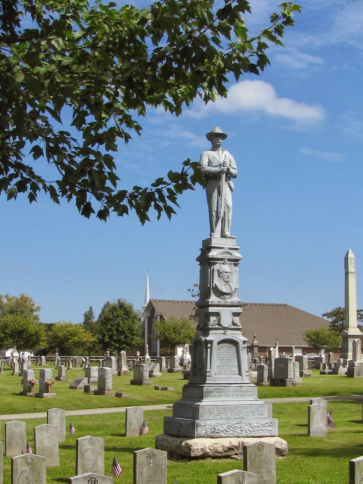 Mostmilitary cemeteries have guardians keeping watch over the soldiers. Usually it is a soldier standing with his gun, gazing out over his band of brothers. Soldiers are especially popular in Civil War cemeteries, both at Union and Confederate graves.