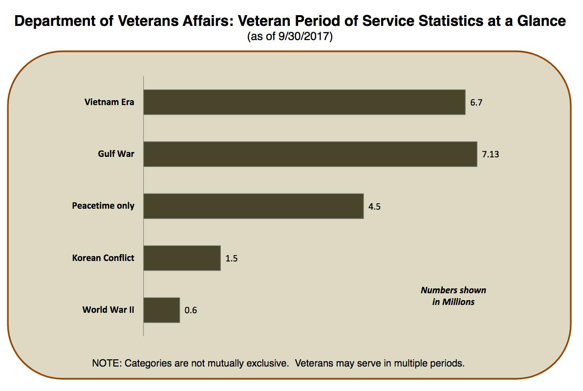War veterans alive, and 4.5 million who served during peacetime. These stats