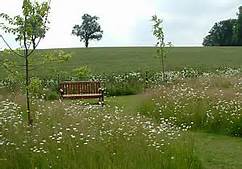 filled with plants, native grasses and flowers, trees and bushes. Monuments and