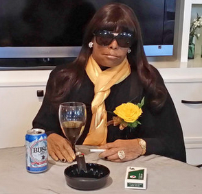 when a local woman was posed at a table, surrounded by several favorite items including a can of beer with a cigarette