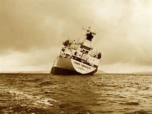 lurched to port (left) and capsized, rolling on it’s side and coming to rest in