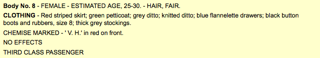 bodies have been identified in the intervening years. Take, for example, body number 8 described when found as: