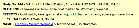 only three were identified; Titanic saloon steward Frederick W Wormald, and
