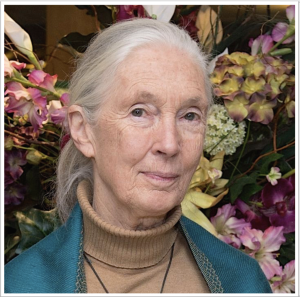Dame Valerie Jane (Morris) Goodall was an English anthropologist who pioneered the study of chimpanzees in Tanzania. Goodall studied primates for more than six decades to discover traits primates and humans share. She founded the Jane Goodall Institute in 1977, promoting conservation and wildlife. Goodall was an active lecturer, authored 32 books, and was the recipient of several medals and awards, including the United Nations Messenger of Peace (2002), French Legion of Honour, Templeton Prize (2021), and the Presidential Medal of Honor (2025). In 2003, Queen Elizabeth II designated her a Dame Commander of the Order of the British Empire. Jane Goodall died October 1st, of natural causes at the age of 91 and was cremated.