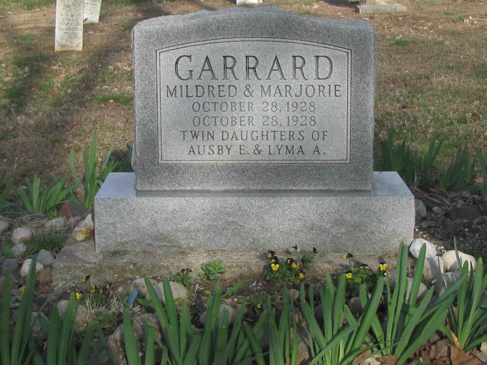There are convenient ways to plant flowers at a grave. Annuals will stand a better chance of surviving lawnmowers and weed eaters if planted directly in front or behind the stone. If perennial bulbs or shrubs are allowed, they usually are placed at the side or sides of the grave marker. There are now stones that allow for plantings as part of the marker with a planting strip left open to the soil below. Maintenance, including weeding and deadheading, is the family’s responsibility.