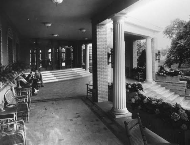 Hotel in West Baden, Indiana. It may be visited by climbing a shrub-lined