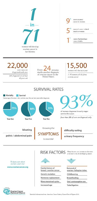 dying from invasive ovarian cancer is 1 in 95. Ovarian cancer survival rates are still much lower than other