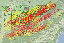 moved to the east, the tornados became more intense. An F-4 tornado hit