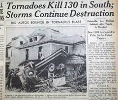 F-4 tornados reported. The Hoosier State was the hardest hit with 138 deaths