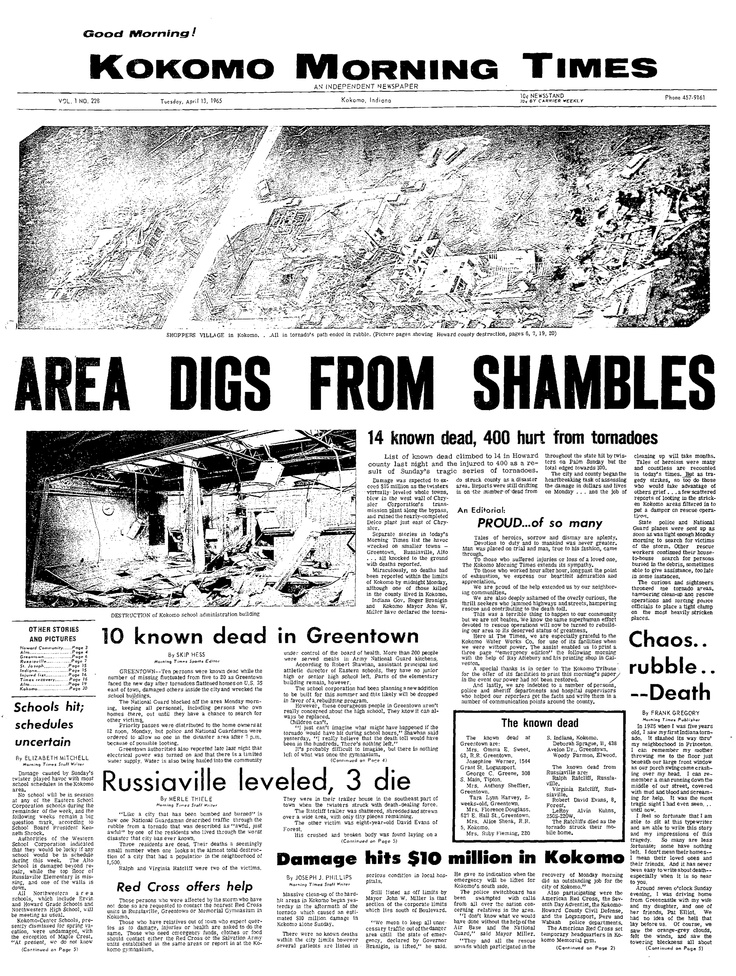 Kokomo, Russiaville, and Lebanon, Indiana suffered enormous damage. For the first time