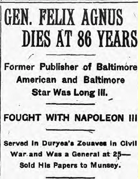 Felix Agnuswas a Civil War Union Brevet Brigadier General and owner/publisher of the Baltimore