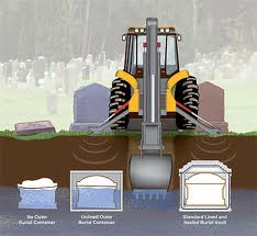 vaults may be made of concrete, steel or fiberglass. Their purpose is to keep the ground from sinking in as the