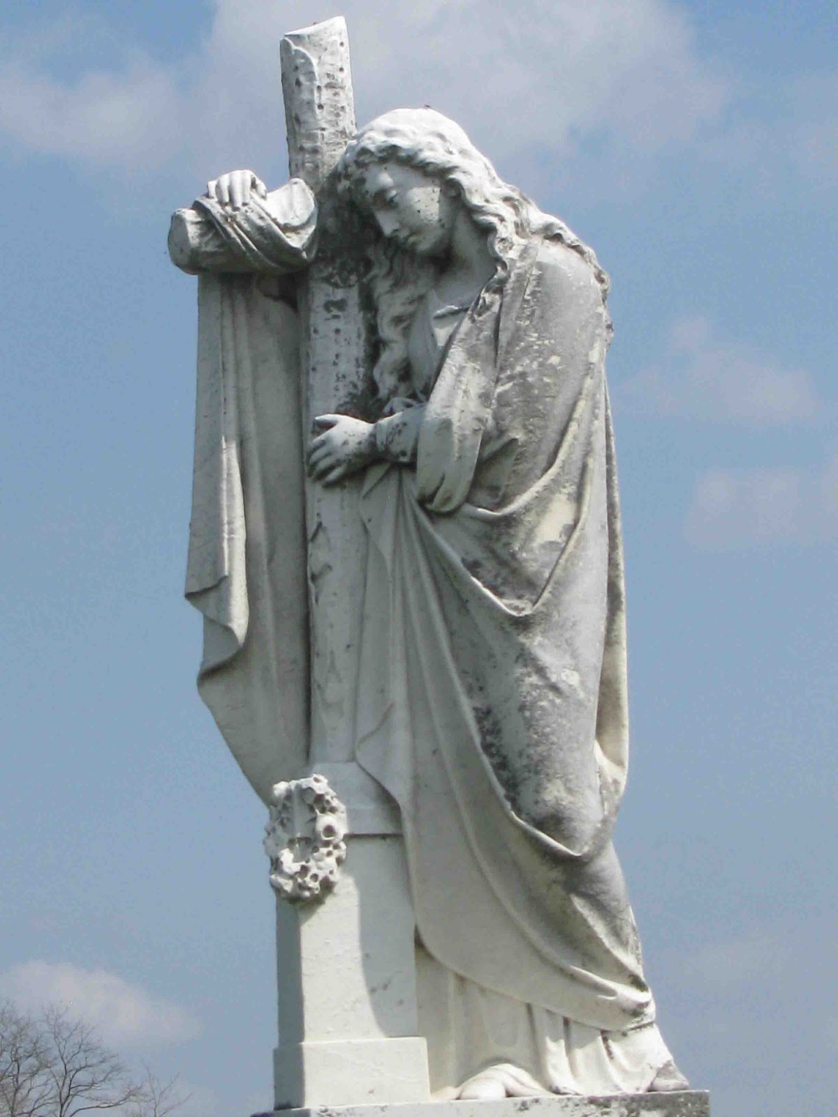 This woman is hanging on the cross indicating unwavering faith. This marker is commonly used on Masonic graves.