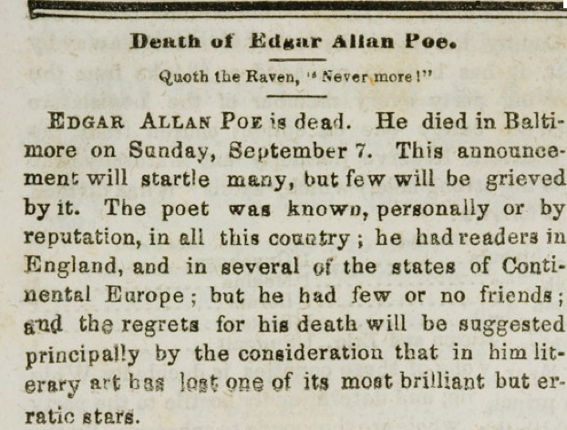 coherent long enough to tell anyone what had happened to him. Edgar Allan Poe died on October 7, 1849