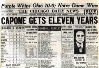 Capone on tax evasion and enforcing the anti-alcohol laws of Prohibition. But