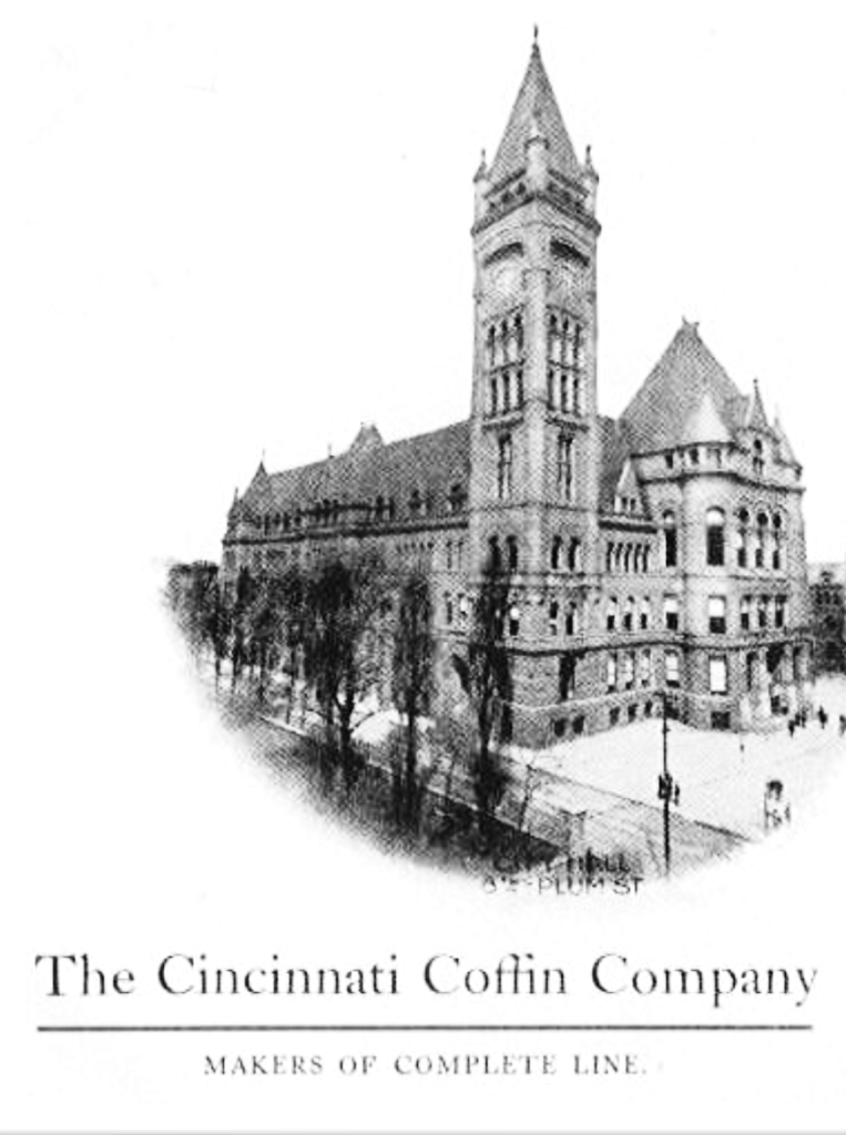Cincinnati became the Coffin Capital of the U.S. during the mid-1800s with the founding of two primary companies and several smaller shops that provided burial vaults, funeral furnishings, and other death-care supplies.
