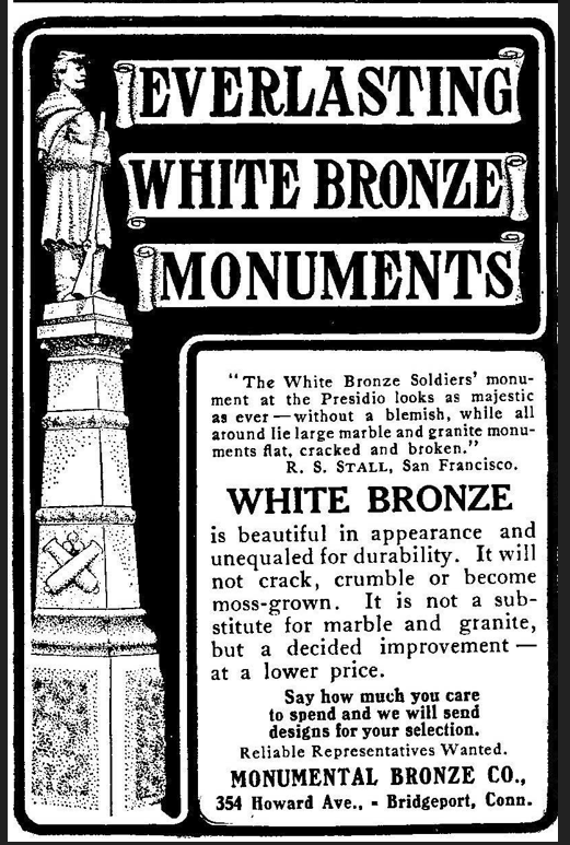 Monumental Bronze Company always claimed that the white bronze monuments were